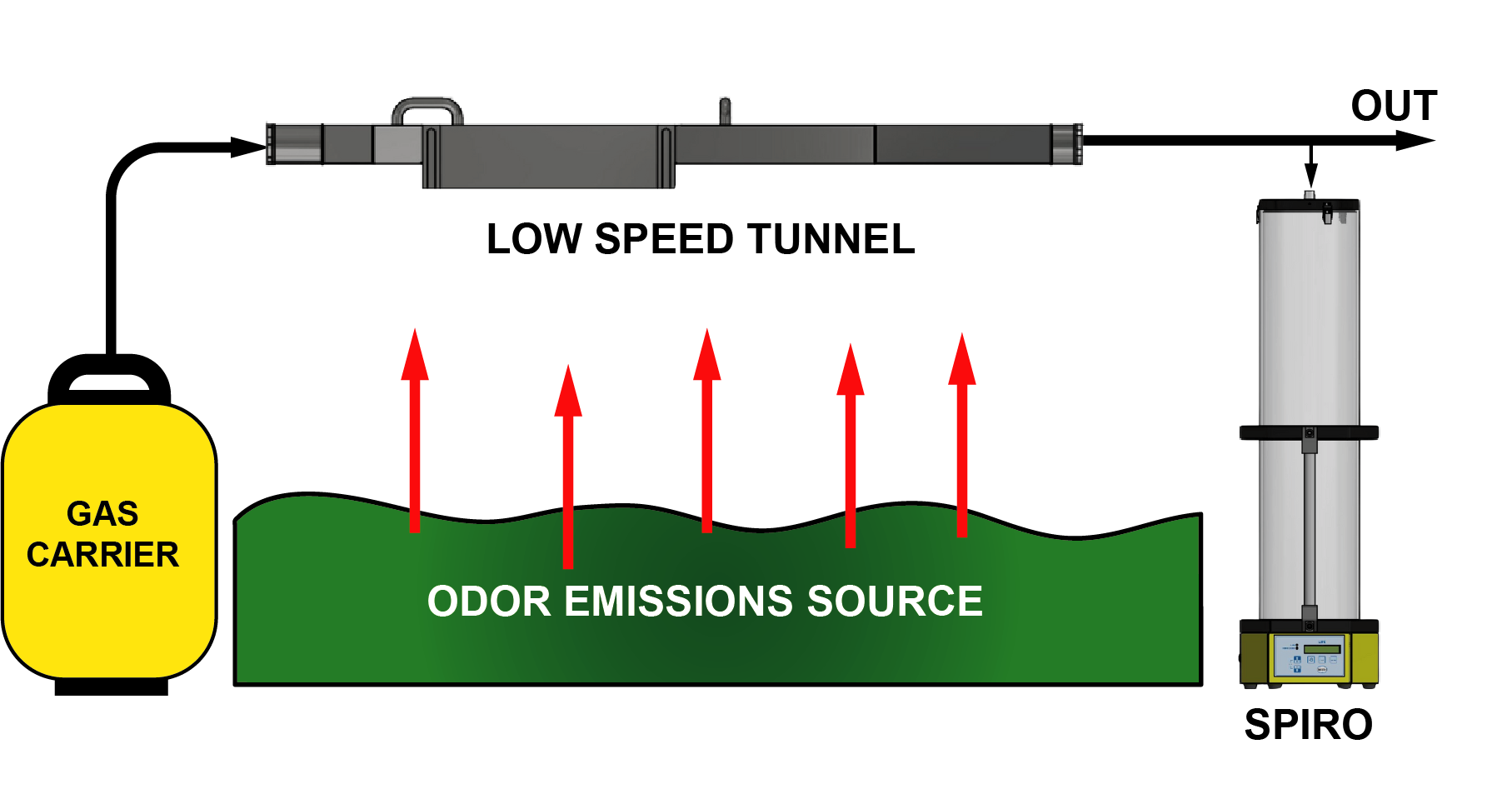 Simulando l’azione naturale del vento su superfici liquide e/o solide, il LOW SPEED TUNNEL viene utilizzato per catturare e analizzare le emissioni di odori provenienti da fonti passive, sia liquide (discariche, vasche dei sistemi di depurazione delle acque reflue) che solide (fanghi).